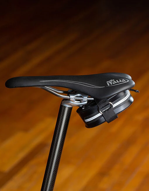 The Arundel Pico Seat Bag is water resistant and extre durable. Arundel makes use of sonic welded seams and nylon fabric impregnated with thermoplastic polyurethane. Think frogman raft. The straps are also nylon and wider than usual, like seat belts in planes and cars. A wider strap means more Velcro area for better security. The materials cost more but in exchange, you have a seat bag that should last a good long time.