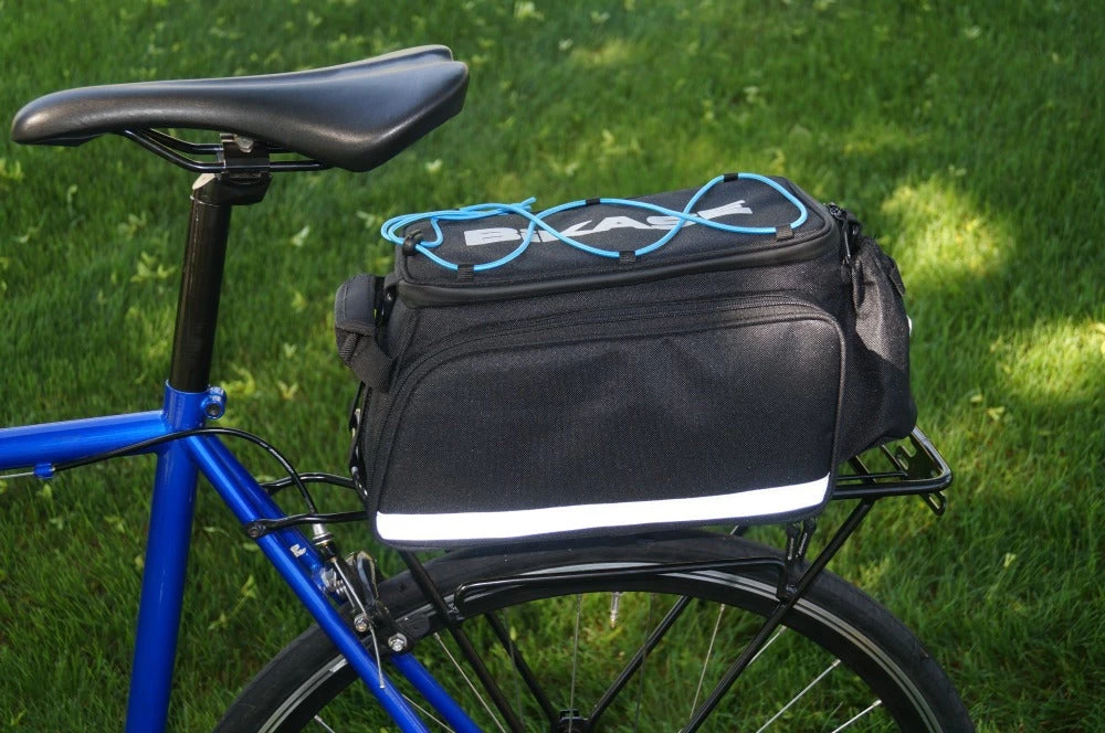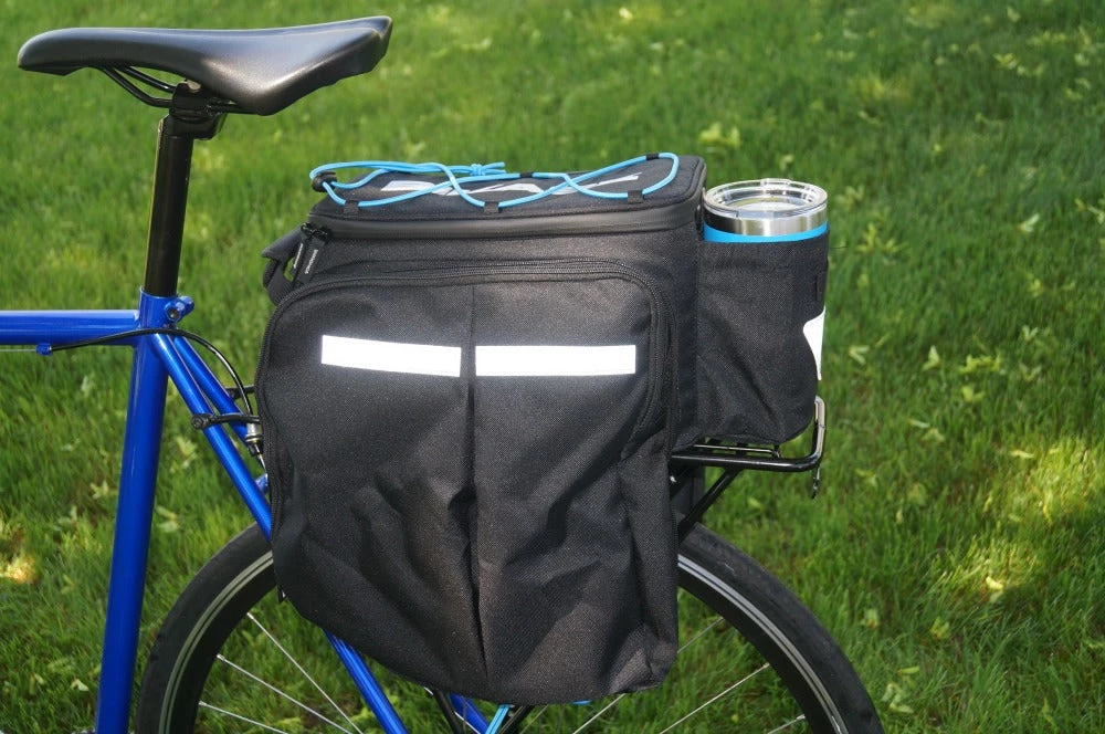 The Big Daddy 2 bike rack bag by BiKASE comes with a large main compartment with a seam-sealed liner, making the internal bag waterproof and drop down panniers on each side, adding extra storage for when needed! The Big Daddy 2 bike rack bag fits on all standard size rear bicycle racks using 4 straps to keep the bag tight and secure!