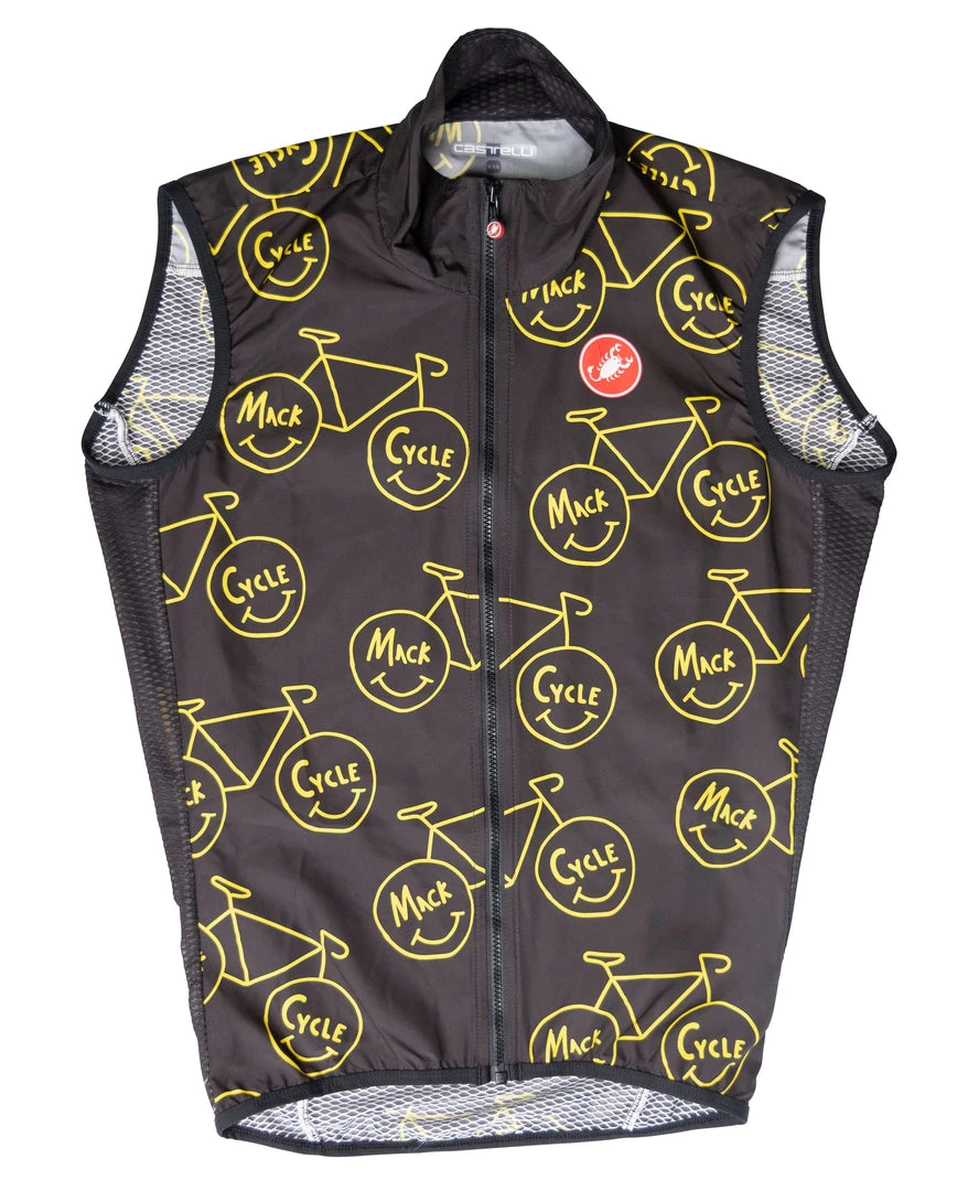The Castelli Mack Cycle Happy Riding Cycling Vest is a great cycling vest for wind protection. The Castelli Mack Cycle Happy Riding Cycling Vest was constructed from the Castelli Pro Light Wind Vest and is an incredibly light layer to throw over your jersey when you need to keep the cool wind off. The front fabric cuts the wind while still letting moisture escape so you stay drier, while the full mesh back makes sure you don’t overheat. It’s insanely light and packable, so that when the weather warms up you can easily stow it away without taking up much valuable space in your pocket. It’s the exact same piece you see on your favourite GCN presenters.