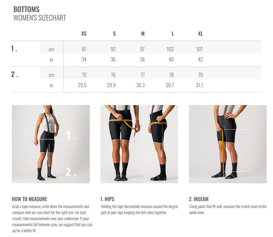 - This listing is for the Castelli Women’s Endurance Cycling Shorts. The other items seen on the model are only to display how the shorts look with complimentary items.