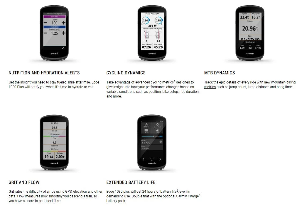 - Nutrition and Hydration Alerts – Get the insight you need to stay fueled, mile after mile. Edge 1030 Plus will notify you when it’s time to hydrate or eat.