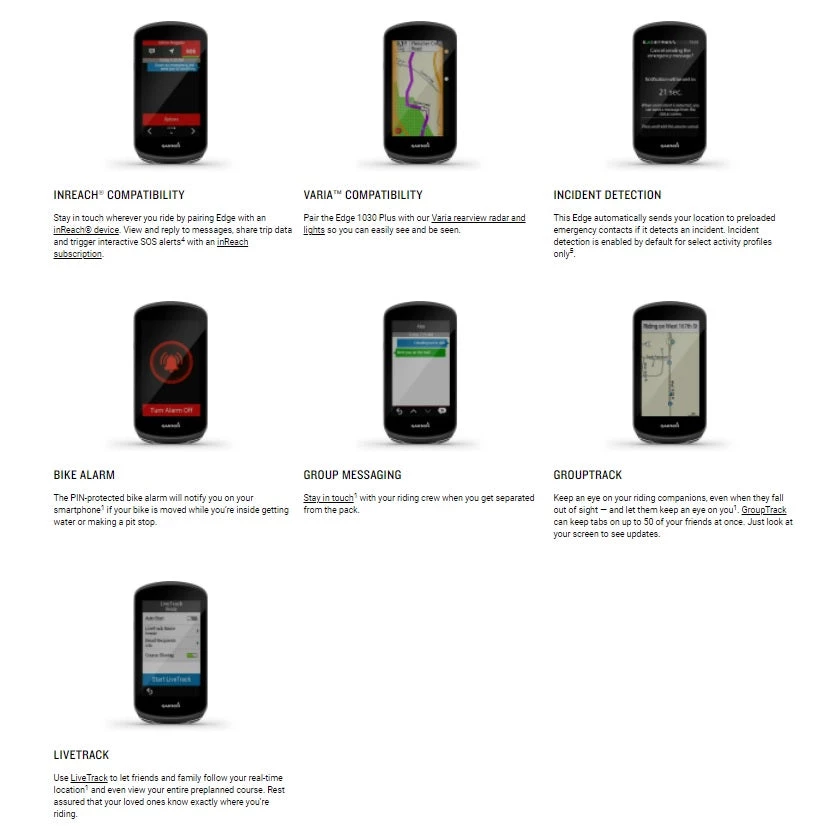 - Varia™ Compatibility – Pair the Edge 1030 Plus with our Varia rearview radar and lights so you can easily see and be seen.