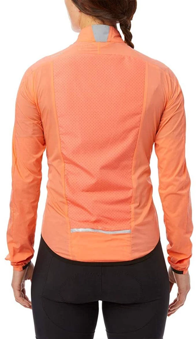 - Fabric – Main body: 100% nylon. Back panel: 100% polyester. Lightweight, windproof main material with 2-way stretch, UPF 50+. Durable Water Repellent (DWR) coating. Durable ripstop fabric, Perforated back ventilation, Gathered elastic hem and sleeve opening, Soft chin guard over top zipper. 3M® Reflective logos and highlights