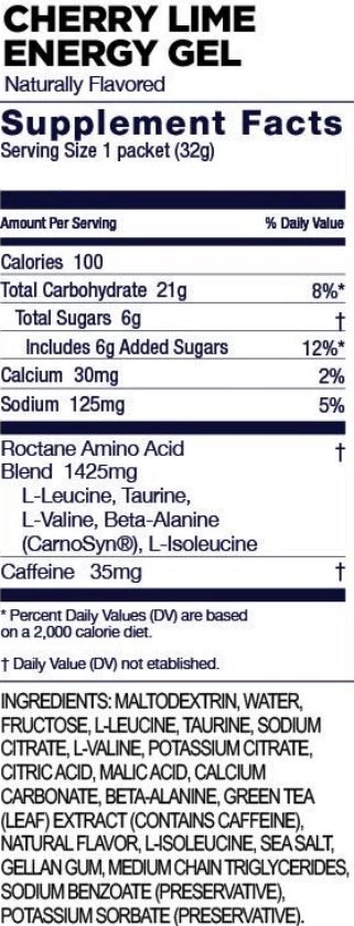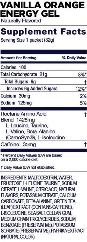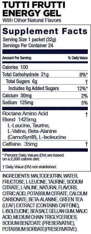 ROCTANE Energy Gels also have extra amino acids: Taurine can help maintain heart contractility and improve cardiac output during long exercise sessions and beta-alanine can help promote formation of the intramuscular buffer carnosine, which can help delay the onset of fatigue during high-intensity efforts.†