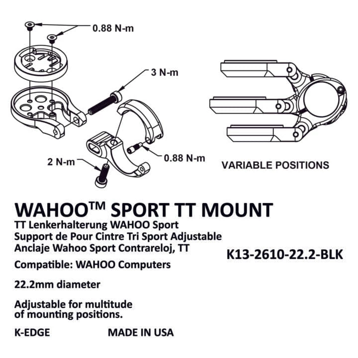 The K-Edge Wahoo Elemnt Sport TT Mount is a simple, lightweight and versatile mount for positioning the Wahoo ELEMNT between the aero bars. Single bolt clamp and pivoting mount design.