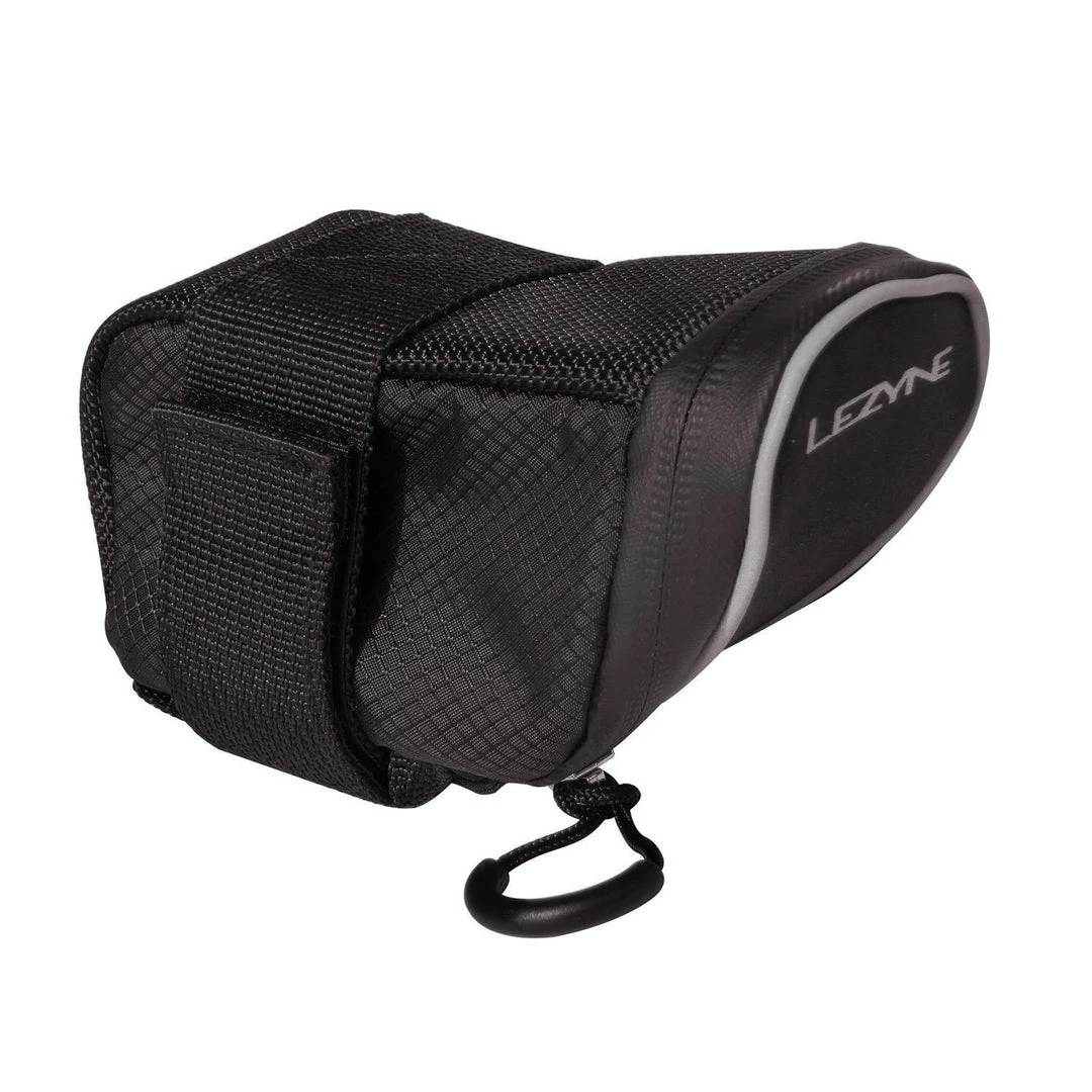 The Lezyne Micro Caddy small saddle bag is a compact, aero-shaped saddle bag. The Lezyne Micro caddy small saddle bag has a large elastic nylon strap that secures the caddy to the seat rails. Durable woven nylon construction. Labeled internal organizational pockets. External, quick access multi-tool sleeve. Water resistant zipper with large pull loop.