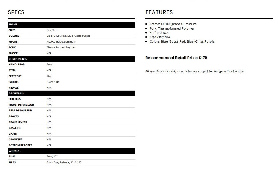 The Giant Pre Girl’s Bicycle features a redesigned frame that is not only easier to ride but is also constructed to give it a more sporty feel for young riders. It’s made with lightweight ALUXX aluminum which also has a new footrest feature and updated geometry to make it more adaptable to riders as they grow in height. It features a low step-through design, and now has an oversized stem and bar to give it a fun, action-packed look and feel.