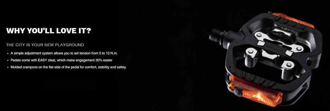 - Pedals come with EASY cleat, which make engagement 30% easier