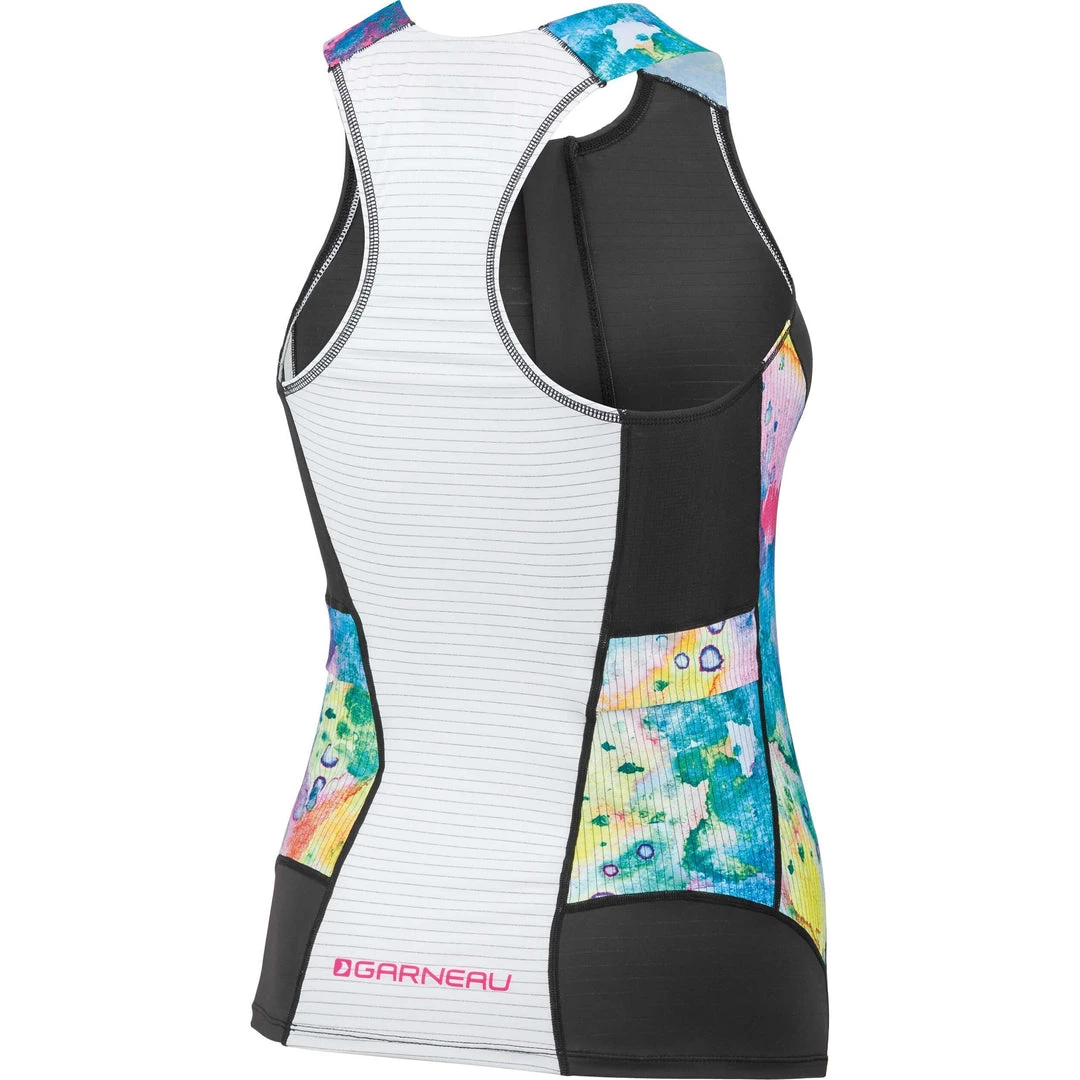 With compression, support and comfort, the Louis Garneau Women’s Pro Carbon Triathlon Top delivers on every count. Compressive fabrics help aid your body’s natural muscle function while you’re working hard, with added support across the shoulders, which are laser-cut for improved aerodynamics. Double back pockets in lightweight mesh offer protection to your essential items, without weighing you down. The tapered cut of the singlet is flattering without pinching at the waist, while the front zip is designed to prevent abrasion on contact with the skin thanks to an internal trim. The use of Micro-Activ and flatlock seams on the shorts eliminates irritation and reduces chafing to keep you comfortable throughout the race. Innovative Coldblack® technology keeps you cool by dispersing heat build-up from the sun’s rays, while front and back reflective accents help improve visibility to keep you safe and seen.