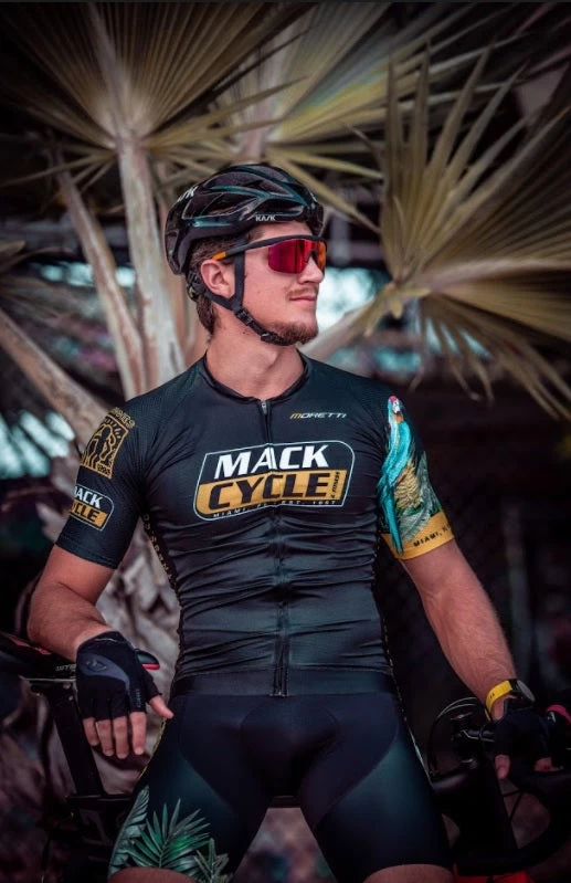 Inspired by Miami’s population of wild parrots and our childhood memories at Parrot Jungle; an iconic Miami attraction. Featuring two brightly colored long-tailed Macaws as suited to our tropical climate as this jersey. This is a go-to jersey fabricated for our hot and humid ride conditions. As you head out to ride be free and wild, just like the Macaw.