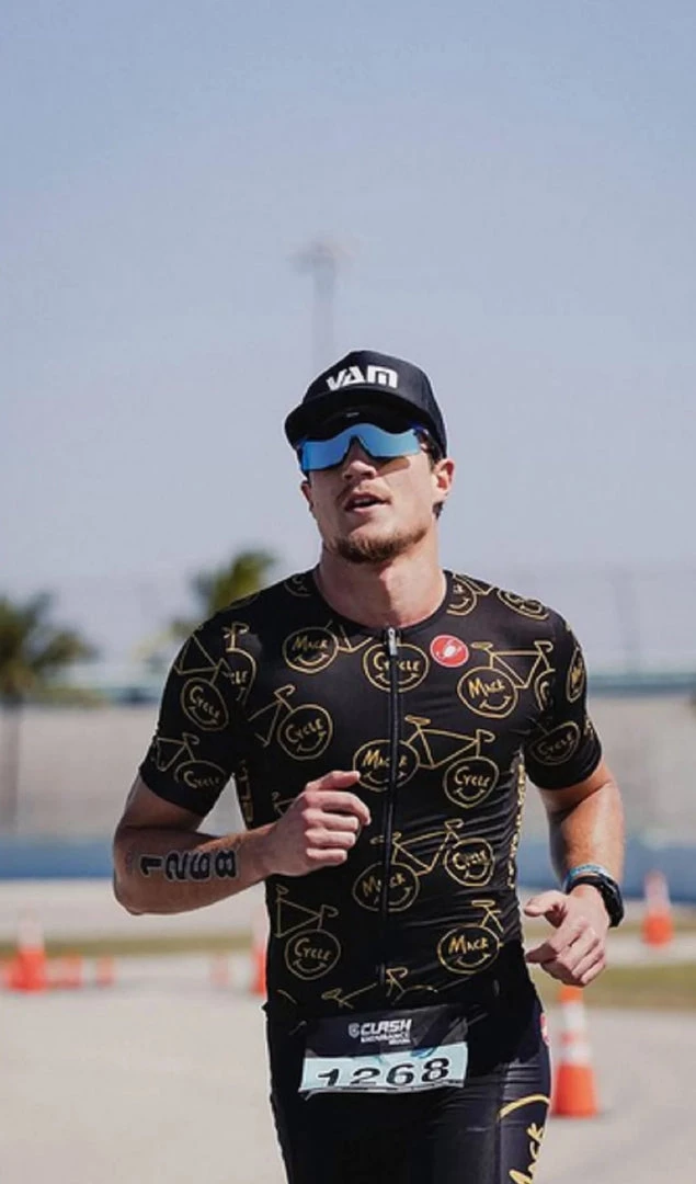 Run: At this point in the race, fatigue sets in. You’ll love the comfort of this suit. The front of the Castelli Mack Cycle Samremo Triathlon Suit has an opening construction that doesn’t pull you forward, and it makes pee stops easier and lets you open it up when you feel too hot. The fabrics of the Castelli Mack cycle Sanremo Triathlon Suit are quick drying, light and cool. The seat pad that felt so good on the bike is small enough you hardly feel it. The two rear pockets compress your gels so they don’t bounce around. The long legs with leg gripper elastic don’t ride up and don’t bind. Maybe you’ll even notice that you don’t have as many burning spots where you’ve been chafed raw. Somehow, you’re thinking that comfort gives you an extra push, some extra speed.