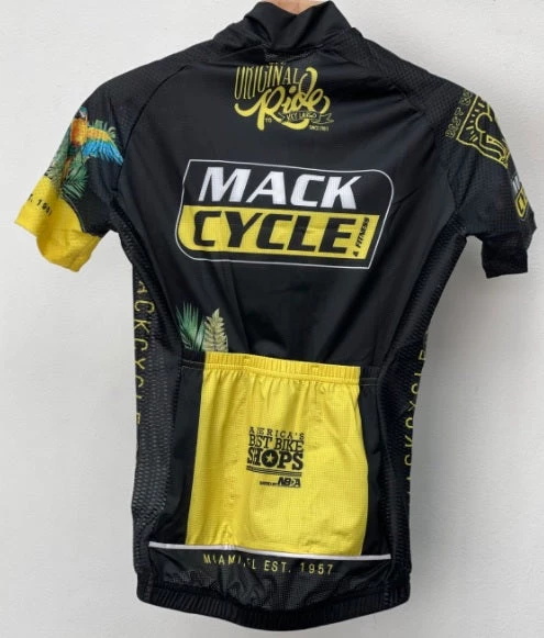 Inspired by Miami’s population of wild parrots and our childhood memories at Parrot Jungle; an iconic Miami attraction. Featuring two brightly colored long-tailed Macaws as suited to our tropical climate as this jersey. This is a go-to jersey fabricated for our hot and humid ride conditions. As you head out to ride be…