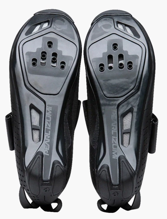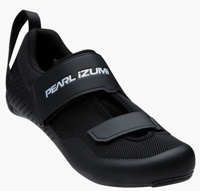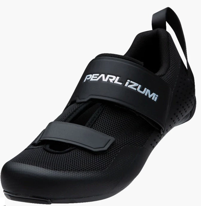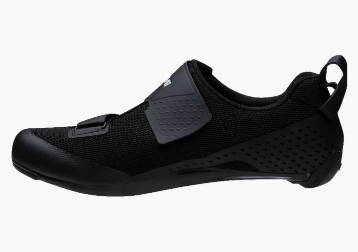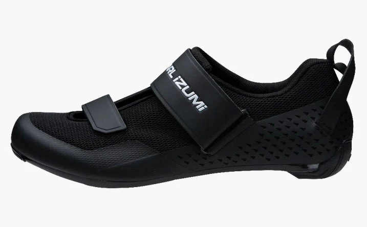 The Pearl Izumi Tri Fly 7 Triathlon Cycling Shoe is a fully-featured shoe designed to take your triathlon ambitions to the next level. The wide-mouth opening and notched main strap of the Pearl Izumi Tri Fly 7 make it easy to set these shoes up for speedy transitions, while the double heel loops make pulling them on and off a breeze. Once on the bike, a stiff sole helps you put the power to the pedals. The mesh upper is airy, quick-drying, and comfortable with or without socks. The Tri Fly 7 features rubber lugs at the toe and heel to improve walkability and toe-off. Compatibility with both two and three-bolt cleats allows this shoe to work well with all clipless pedal systems.