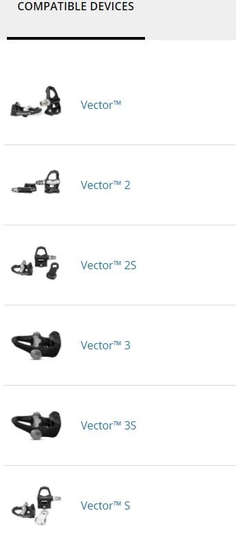 - Compatible Pedals – Garmin Vector, Garmin Vector 2, Garmin Vector 2S, Garmin Vector 3, Garmin Vector 3S, Garmin Vector S