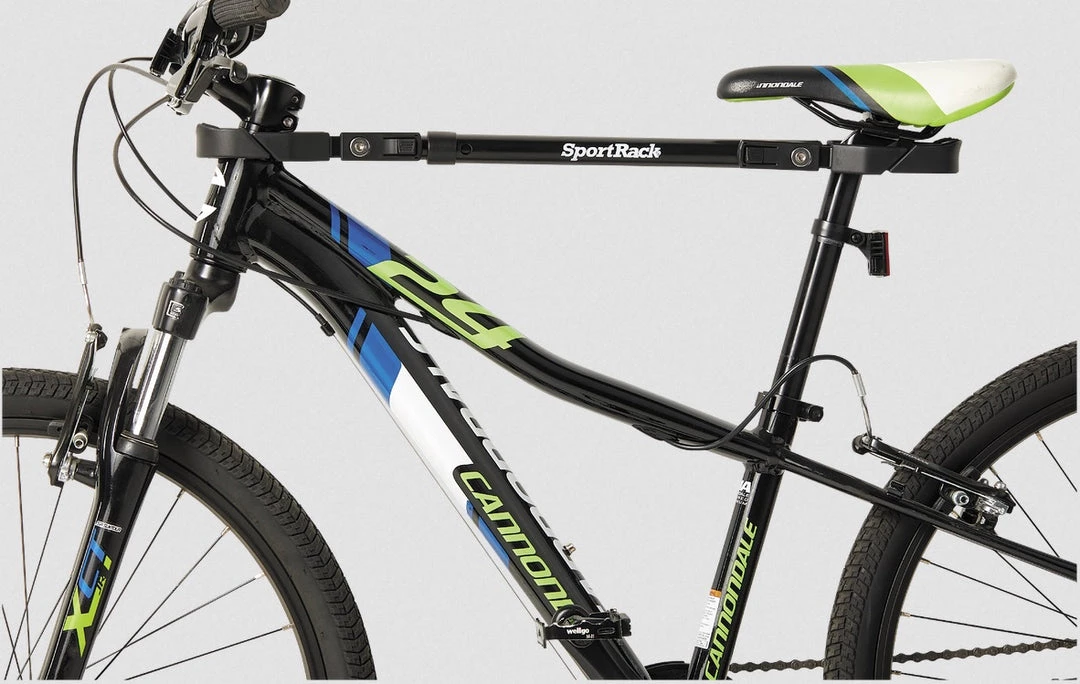 If you have a downward sloping down tube on your bike and can’t properly carry it on your car bike rack, look no further than the Sportrack Adjustable Bike Frame Adapter. By affixing the Sportrack Adjustable Bike Frame Adapter from your handlebar stem to your seatpost, this will solve your problems and allow you to now place your bike on your car bike rack.