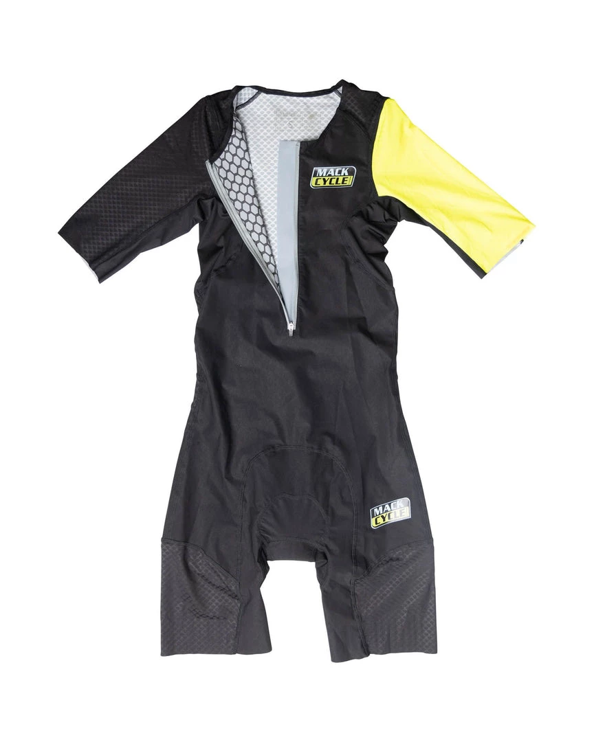 The Rocket Science Mack Cycle Men’s RocketTech Triathlon Race Suit brings racing to the next level – light, with compression support, UV protection and amazing hydrophobic + chlorine resistant material – this is sure to become your favorite trisuit!