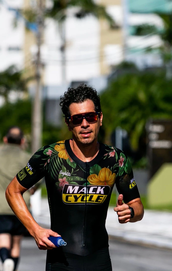 - Italian pad (Chamois) special for triathlon with a men’s anatomical design, which offers great support at key pressure points. Its materials have fast absorption technology, breathability, antibacterial properties and elongation capacity to respond to the movements of the athlete when he is practicing the sport.