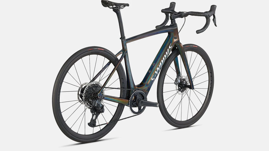 Like all of the Specialized S-Works bikes, the S-Works Turbo Creo SL is Specialized’s pinnacle build. The FACT 11r chassis and Future Shock 2.0 with a hydraulic damper is dressed with a 1x build that includes SRAM Red AXS eTap, a SRAM XX1 Eagle rear derailleur, and a 10-50t cassette for an incredible gear range. It rolls on Roval Terra CLX EVO Disc carbon wheels and 30mm S-Works Turbo tires. And to finish off the build, Specialized has included their S-Works Carbon Hover bars, an S-Works Future Stem, and a Body Geometry S-Works Power saddle. Specialized has thrown in a range extender too, because you’re never going to want to stop riding this bike.