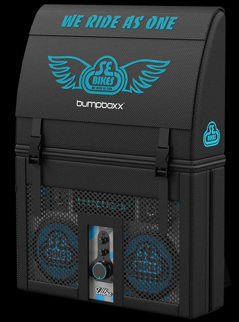 Youāre going to be ready to rock the block with the new SE Bikes Bumpboxx! The SE Bikes Bumpboxx is a super portable model that features a boominā bass radiator on the backside, and the Bluetooth and USB features make it easy to blast your tunes on the go. And get this: the SE Bikes Bumpboxx comes with an awesome SE backpack with ventilated areas for the speakers so you can crank up the volume while carrying the Bumpboxx on your ride. The backpack has several separate compartments to hold all kinds of other goodies. With this on your back, youāre a mobile music machine!Ā