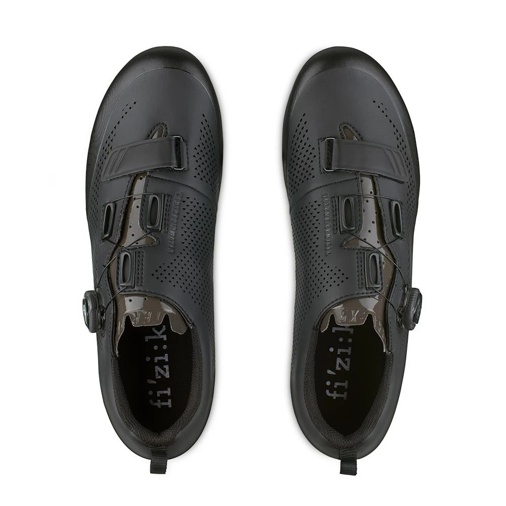 The Fizik Terra X5 mountain bike shoe is a comfortable mountain bike shoe with laser perforated microtex upper, Single Boa® L6 Dial B and Single Strap closure system for comfort and performance. Because the Fizik Terra X5’s asymmetric opening is fastened by a single micro-adjustable Boa L6 Dial B dial running a steel-coated nylon lace through tough, light, ‘Slipstream’ plastic guides, and combined with a 25mm microfiber and Velcro strap, it’s easy and quick to get a precision fit for any foot shape. That optimum fit means comfort and performance.