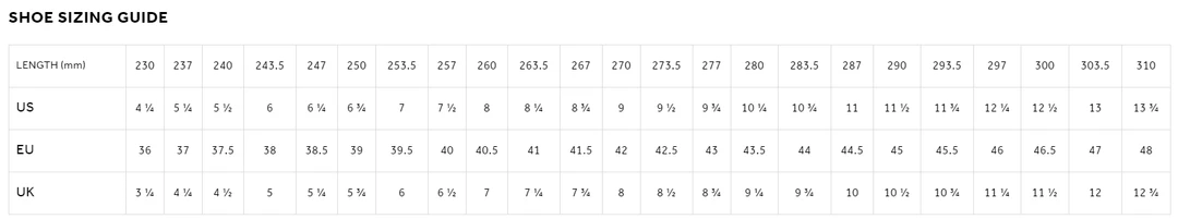 - Overcurve – asymmetrical construction that ergonomically conforms to the foot’s anatomy