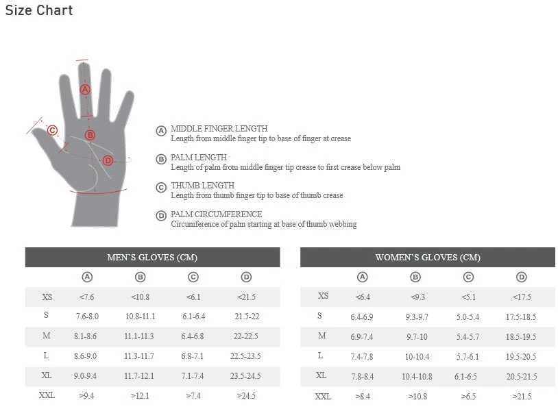 - Clarino synthetic leather palm provides durability without sacrificing bar-feel.