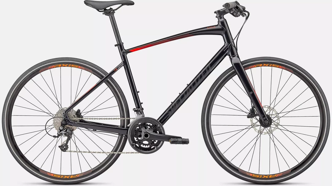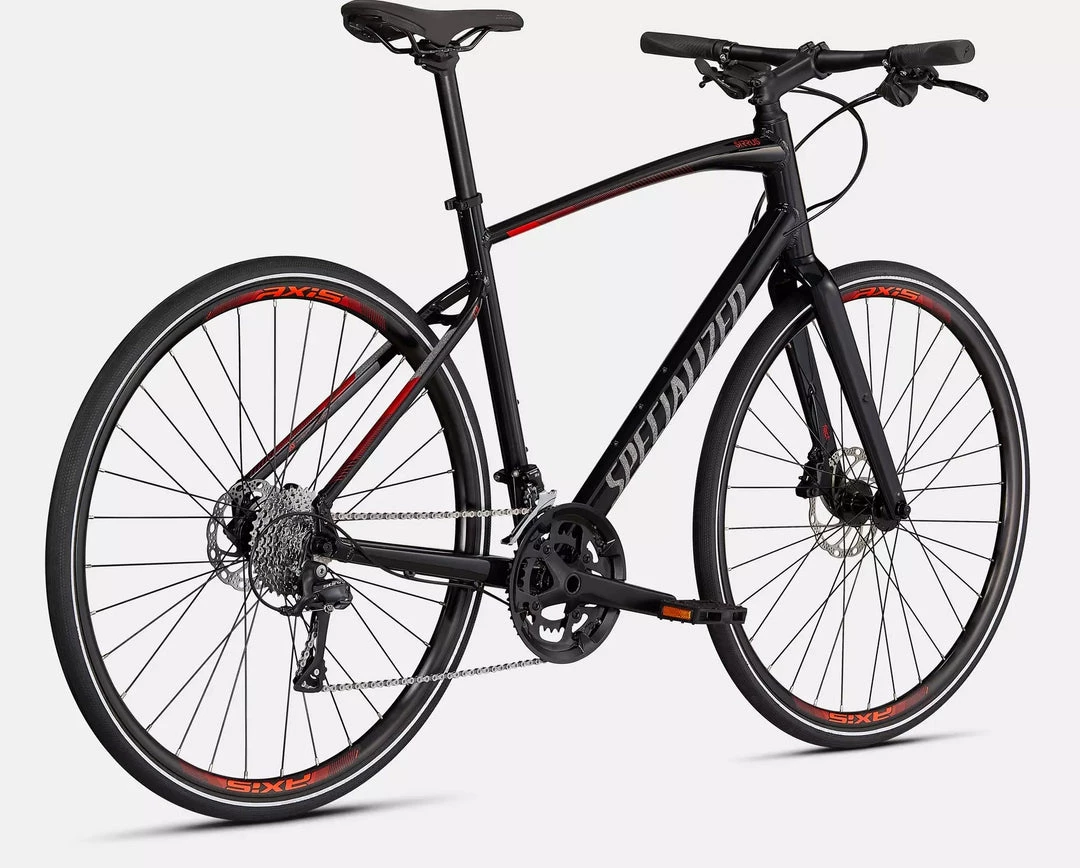 - FRAME – Specialized A1 Premium Aluminum, Fitness Geometry, butted tubing, internal cable routing, flat-mount disc, quick-release, Plug + Play rack/fender mounts