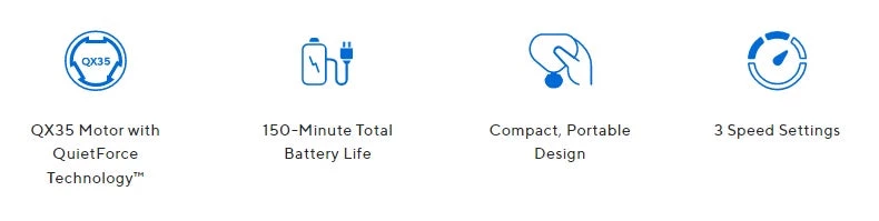 - Battery Life and Charge Time – 150 minutes; 80 minutes