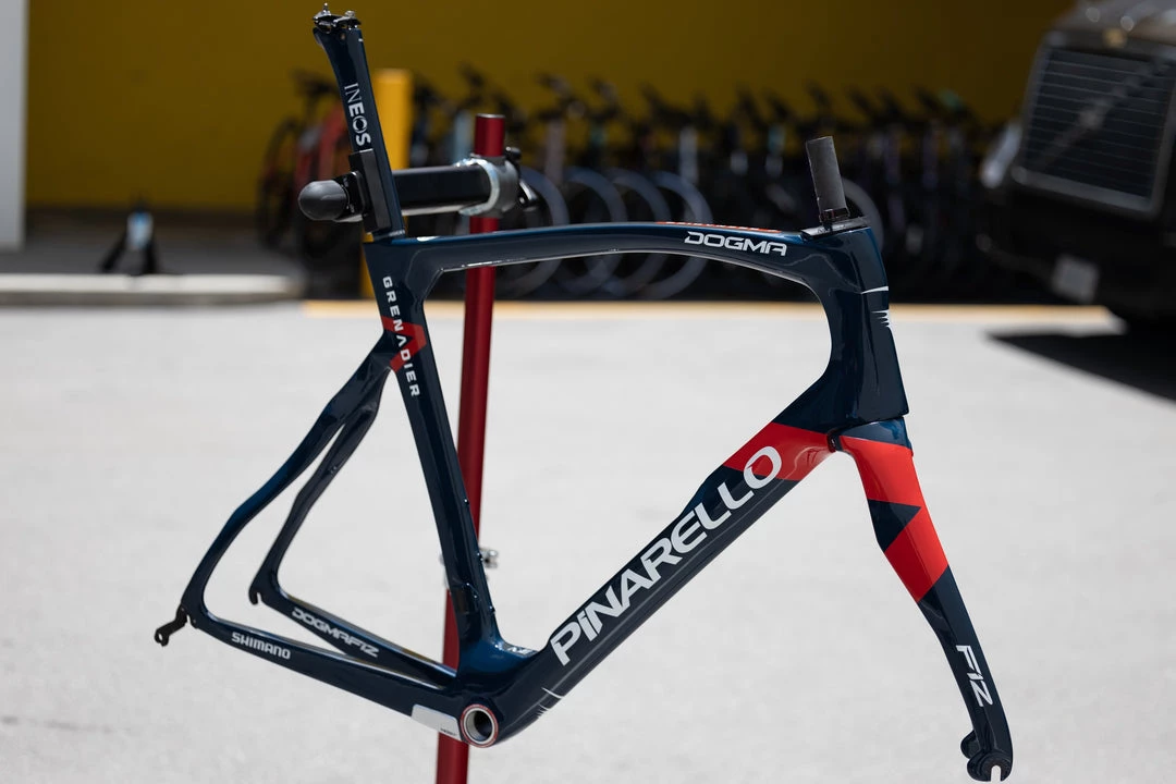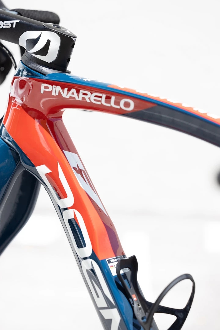 The Pinarello Dogma F is a name that evokes excellence, quality, perfection, beauty, Italian design. The most successful bicycle in history … end of discussions. That is why Team Ineos has made the Pinarello Dogma F12 the frame of choice as they pursue excellence on the road to the podium! Check out this Team Ineos Pinarello Dogma F Frameset in size 50 used by Grenadier rider Jhonatan Narvaez!
