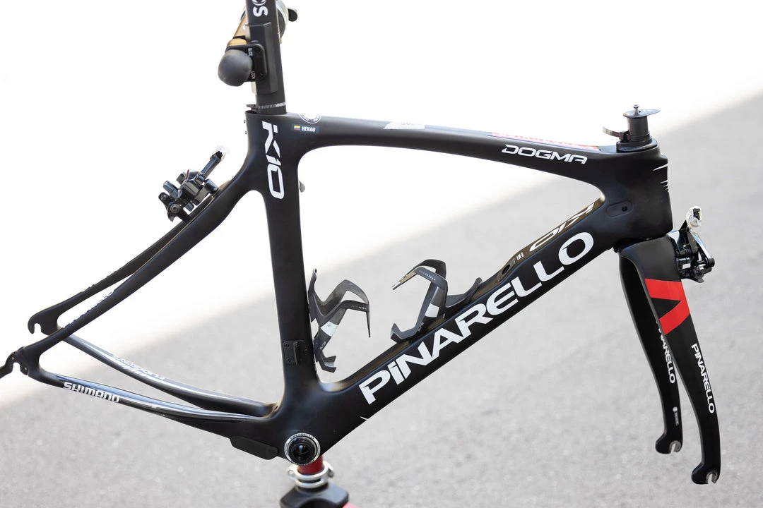 The Pinarello Dogma K10 is a name that evokes excellence, quality, perfection, beauty, Italian design. That is why Team Ineos has made the Pinarello Dogma K10 one of their framesets of choice as they pursue excellence on the road to the podium! Check out this Team Ineos Pinarello Dogma K10 rim brake frameset in size 50 ridden by Grenadier rider Sebastian Henao!