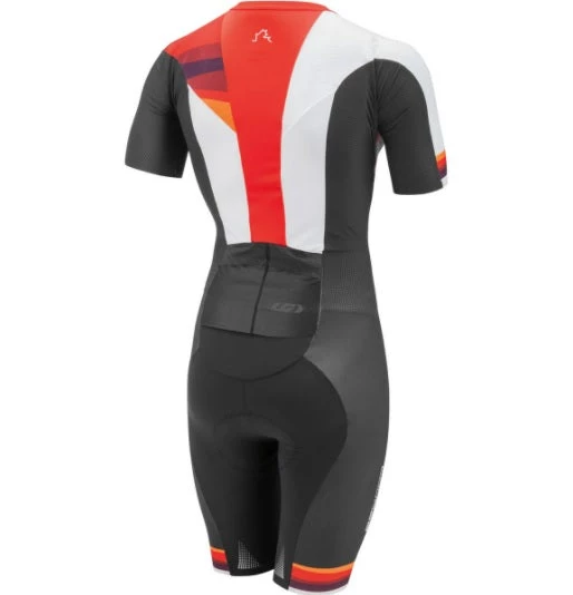 How can Louis Garneau improve the best triathlon suit on the market? The Louis Garneau Tri Course LGNeer Short Sleeved Triathlon suit has been tested with IRONMAN champion Lionel Sanders and Louis Garneau added their most aerodynamic and compressive fabrics to this new edition. Developed in collaboration with Alphamantis, the Louis Garneau Tri Course LGneer Triathlon Skin Suit is designed to slice through the air. Wind tunnel and track testing has shown that it can shave off up to one second per kilometer on the bike compared to other suits. Considering the difficulty of the most challenging triathlons, these saved watts can prove very valuable in the last miles of the race. The shorts of the suit are made with LGneer fabric, developed with European experts. It offers 3 compression zones of varying thickness to help improve blood flow in specific areas of the thigh. The suit’s cut also takes into account the range of motion needed for maximum efficiency in the water and when running.